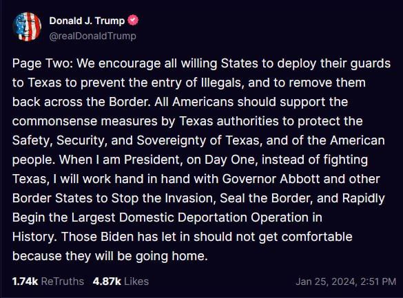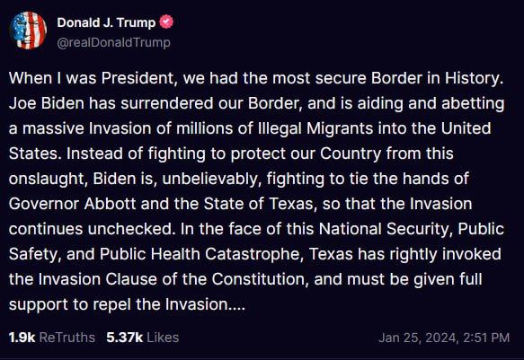 The Biden administration's open borders policy, and all those who are carrying it out (Mayorkas, Blinken, SCOTUS, etc.) is a clear and present danger to the safety and security of the United States of America. If the borders are not secured, America will fall, and EVERY state and citizen will find themselves living in a war zone where enemy combatants who crossed the borders (thanks to Democrats) will be actively seeking out and exterminating Americans by force, along with carrying out their pre-designated sabotage operations against America's infrastructure. #StandWithTexas