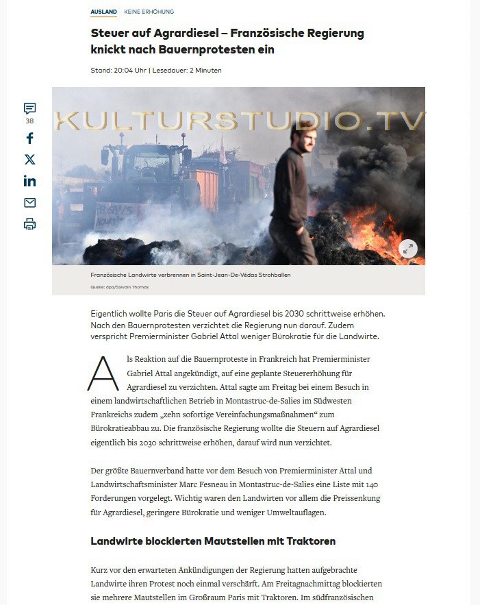 🇫🇷🚜 Die großen Zufahrtsstraßen in die französische Hauptstadt sind nun blockiert. Paris ist eingekesselt.