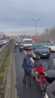 Die Autobahn A13 in Richtung Hauptstadt ist vollständig von Taxifahrern blockiert, die die Bauern bei ihrem Versuch unterstützen, die französische Hauptstadt zu belagern.
